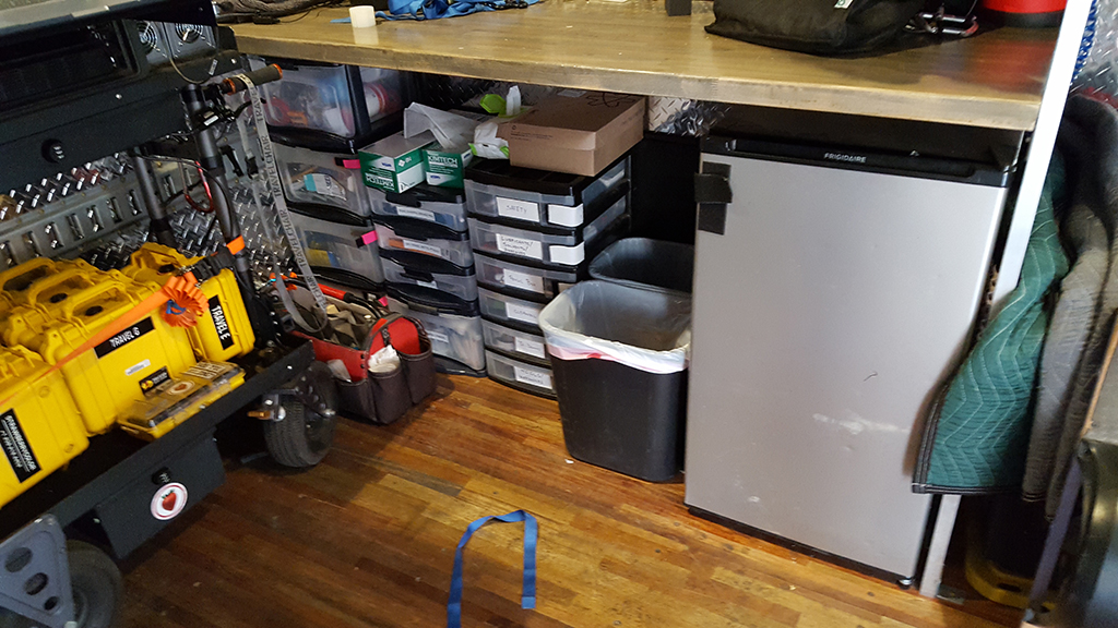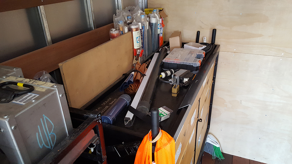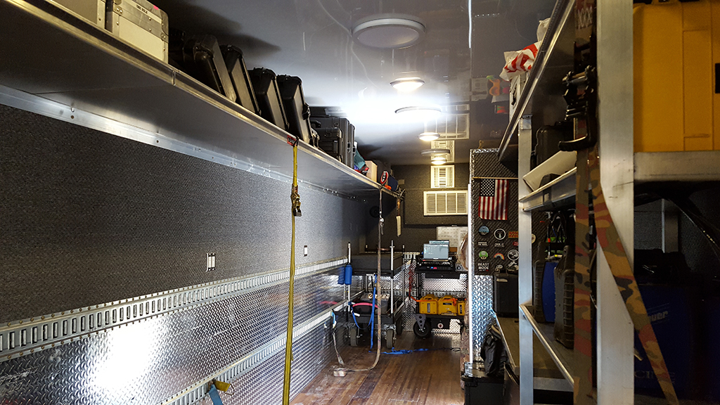 This camera truck is equipped with a modular shelving system for custom configuration to meet your camera department's requirements.