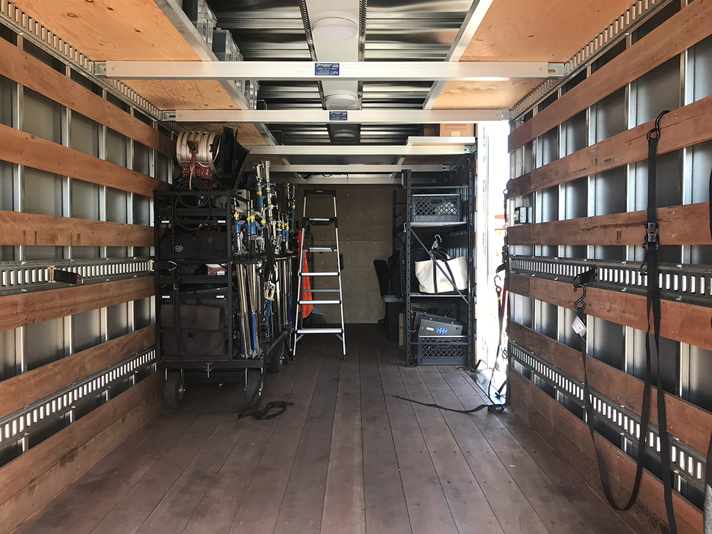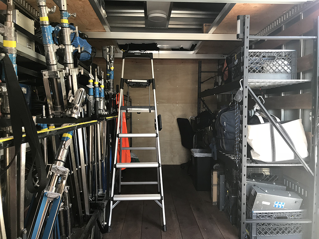 This grip and electrical truck is equipped with a modular shelving system for custom configuration to meet your production gear's requirements.