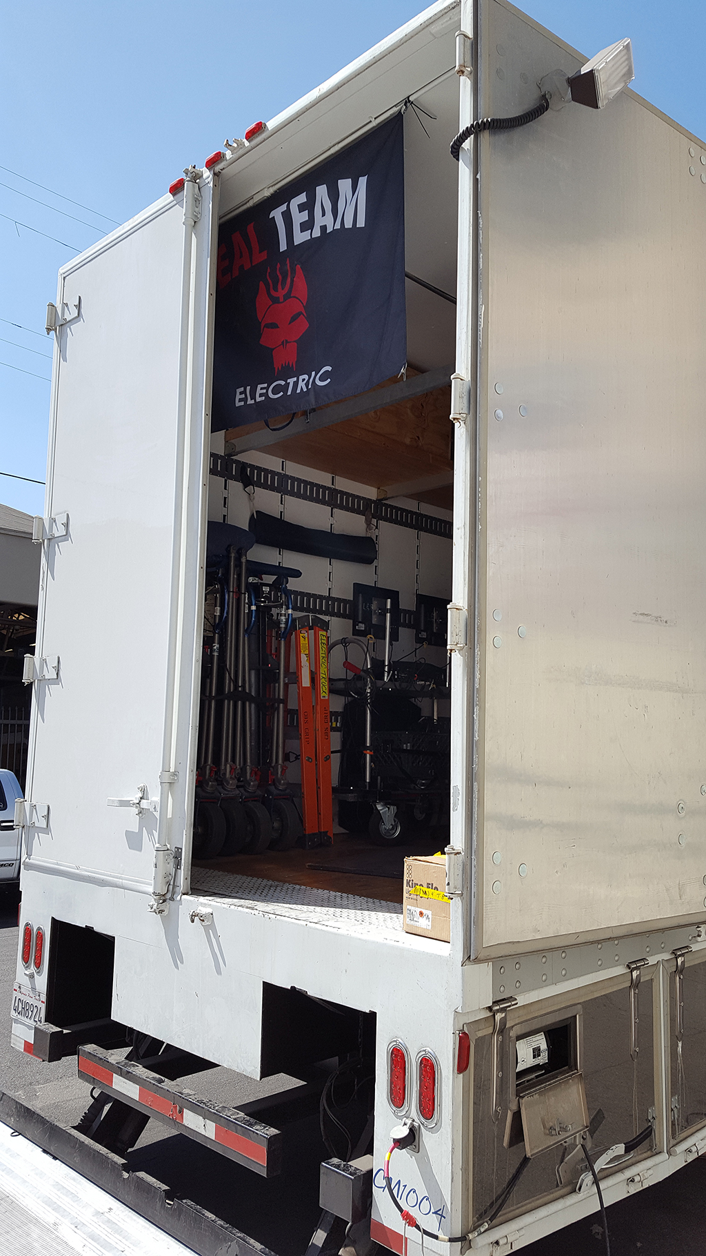 This grip and electrical truck is equipped with a modular shelving system for custom configuration to meet your production gear's requirements.