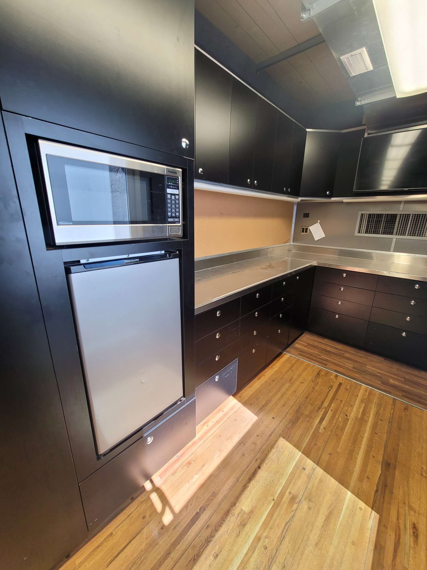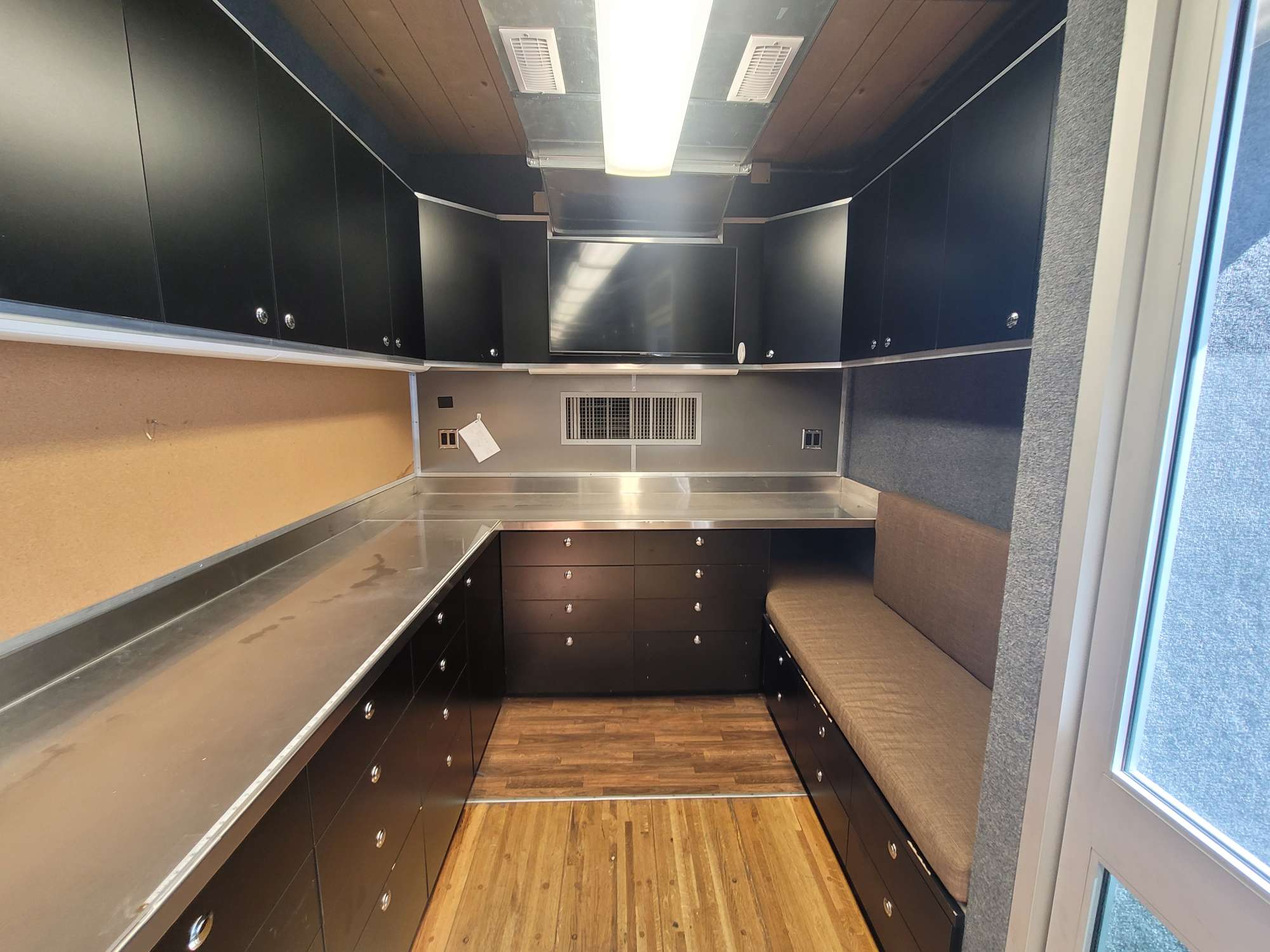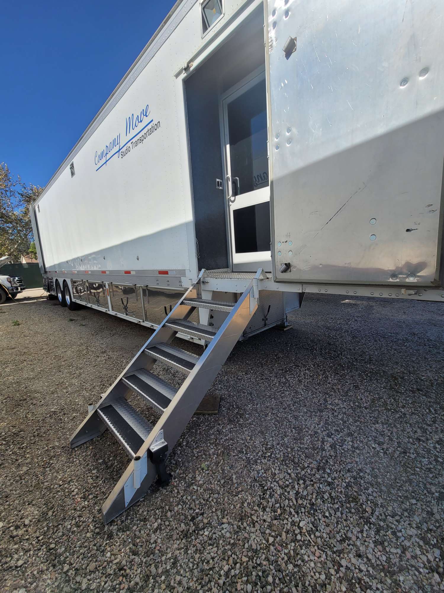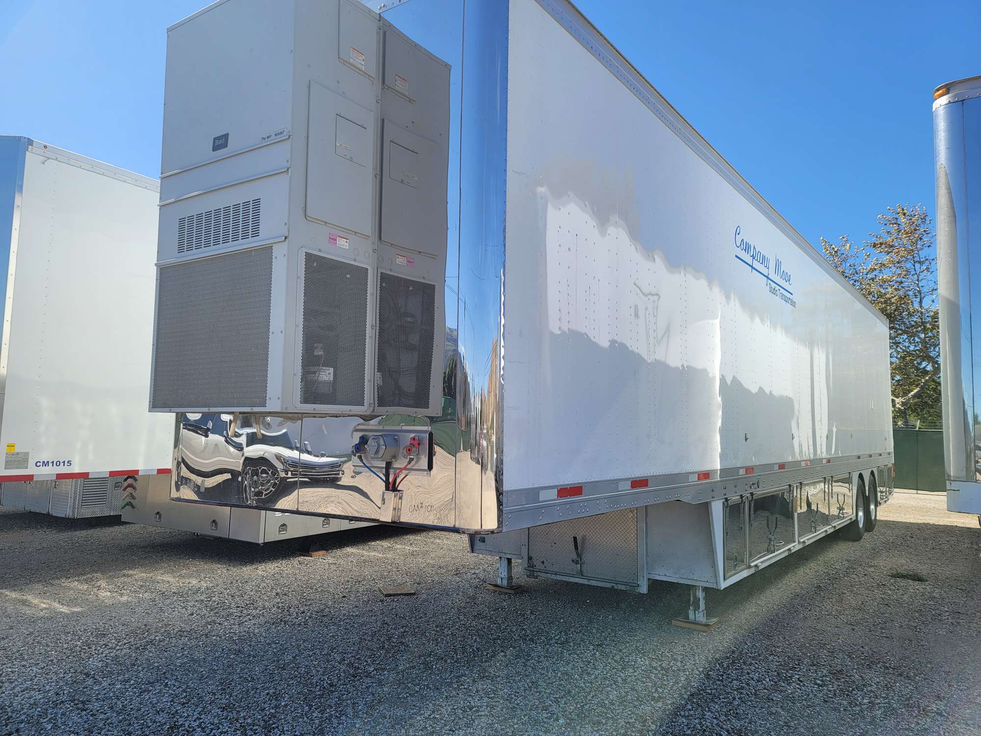 This vehicle is designed for Wardrobe Department use. The trailer includes: jockey box, storage cupolas, dual side and back loading. Trailer comes with a rear gate door, air-ride and automatics. This unit's workspace also includes custom storage and a built-in MP3 stereo system.