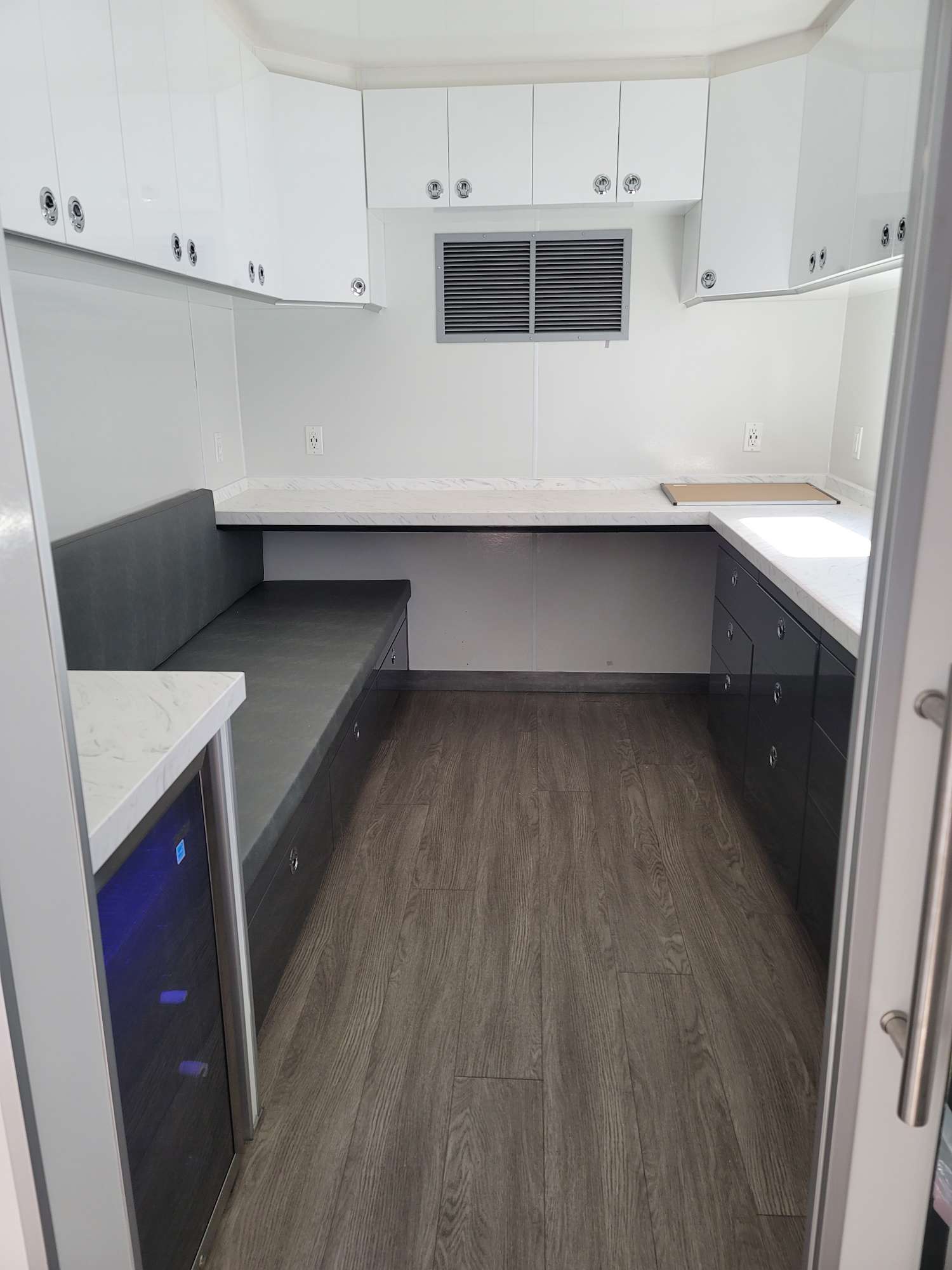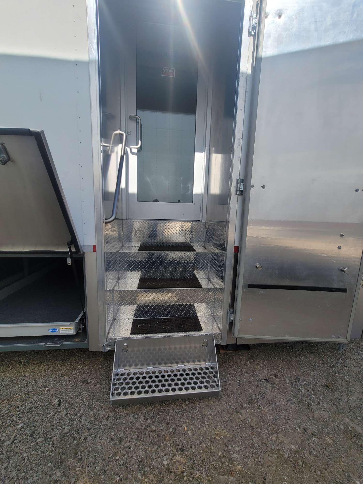 This vehicle is designed for Wardrobe Department use. The trailer includes: jockey box, storage cupolas, dual side and back loading. Trailer comes with a rear gate door, air-ride and automatics. This unit's workspace also includes custom storage and a built-in MP3 stereo system.