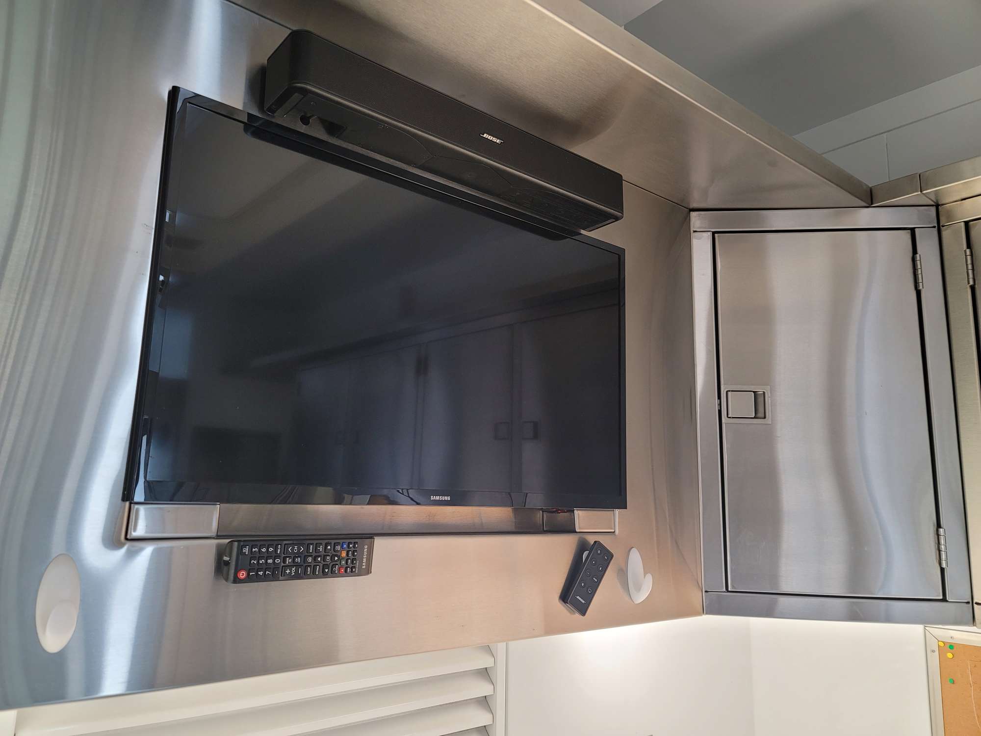 This vehicle is designed for Wardrobe Department use. The trailer includes: jockey box, storage cupolas, dual side and back loading. Trailer comes with a rear gate door, air-ride and automatics. This unit's workspace also includes custom storage and a built-in MP3 stereo system.